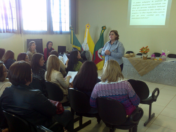 O encontro foi aberto pela coordenadora da 32ª CRE, Josefina Adams de Moraes, e ministrado pela assessora regional da Educação Especial, Dalva Maria Chuquel Escobar. Na ocasião, as professoras da Educação Especial, Sandra Maciel e Elisângela Gabert, compartilharam o modo com que realizam a avaliação dos alunos nas Salas de Recursos.