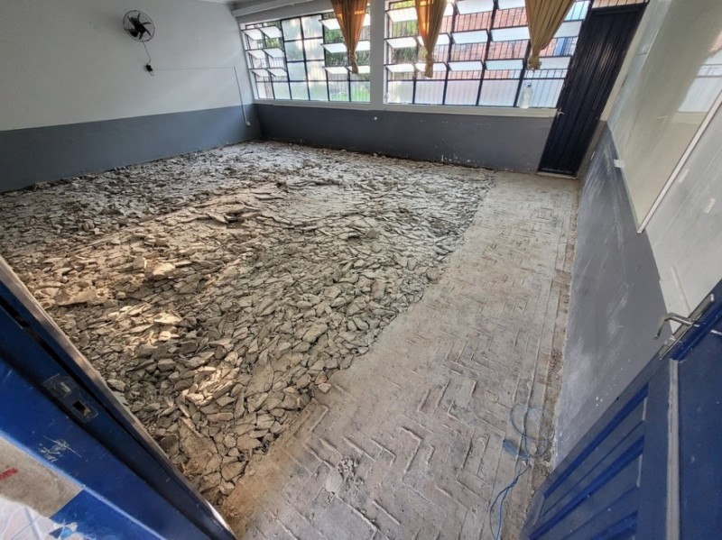 - Obra: recuperação geral, com manutenção da alvenaria, da cobertura, das instalações elétricas e hidrossanitárias, dos pisos, das paredes, dos forros e das pinturas e reconstrução do muro e calçada