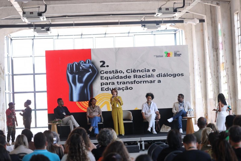 O segundo dia do 3º Encontro Estadual de Educação Antirracista, realizado nesta sexta-feira (28/11) no Instituto Caldeira, em Porto Alegre, foi marcado por debates aprofundados, vivências estudantis e o reconhecimento de iniciativas que fortalecem a equidade racial na educação pública. A programação, promovida pela Secretaria da Educação (Seduc) com apoio da Fundação Itaú, do Itaú Social e do Instituto Unibanco, reuniu gestores, pesquisadores, educadores, estudantes e comunidades para discutir os avanços e desafios da implementação de políticas antirracistas no Rio Grande do Sul.
